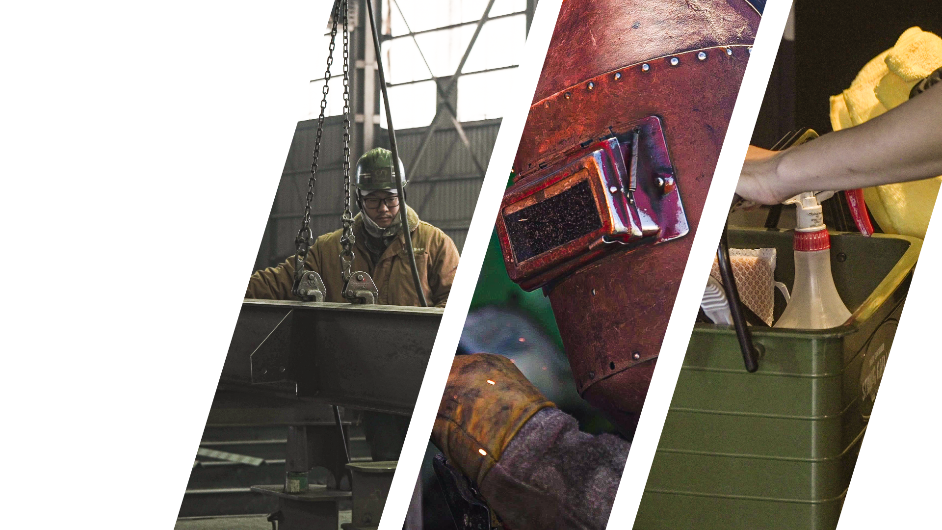 BUSINESS 事業内容 株式会社 幸製作所 鉄骨階段や各種鉄部の補修、高次加工物の製作をはじめ、現場鍛冶や耐震補強工事など、専門性の高い金属加工・施工を行っています。 また、納屋や倉庫、ガレージの製作、金属部の塗装まで一貫して対応しており、幅広いご要望にお応えしています。 株式会社 KOH-Factory 不動産の退去清掃やリフォーム・新築・竣工時の美装、タイル美装、民泊清掃などを行っており、 一般の清掃業者が敬遠しがちな見えない部分まで徹底的に分解清掃することを得意としています。